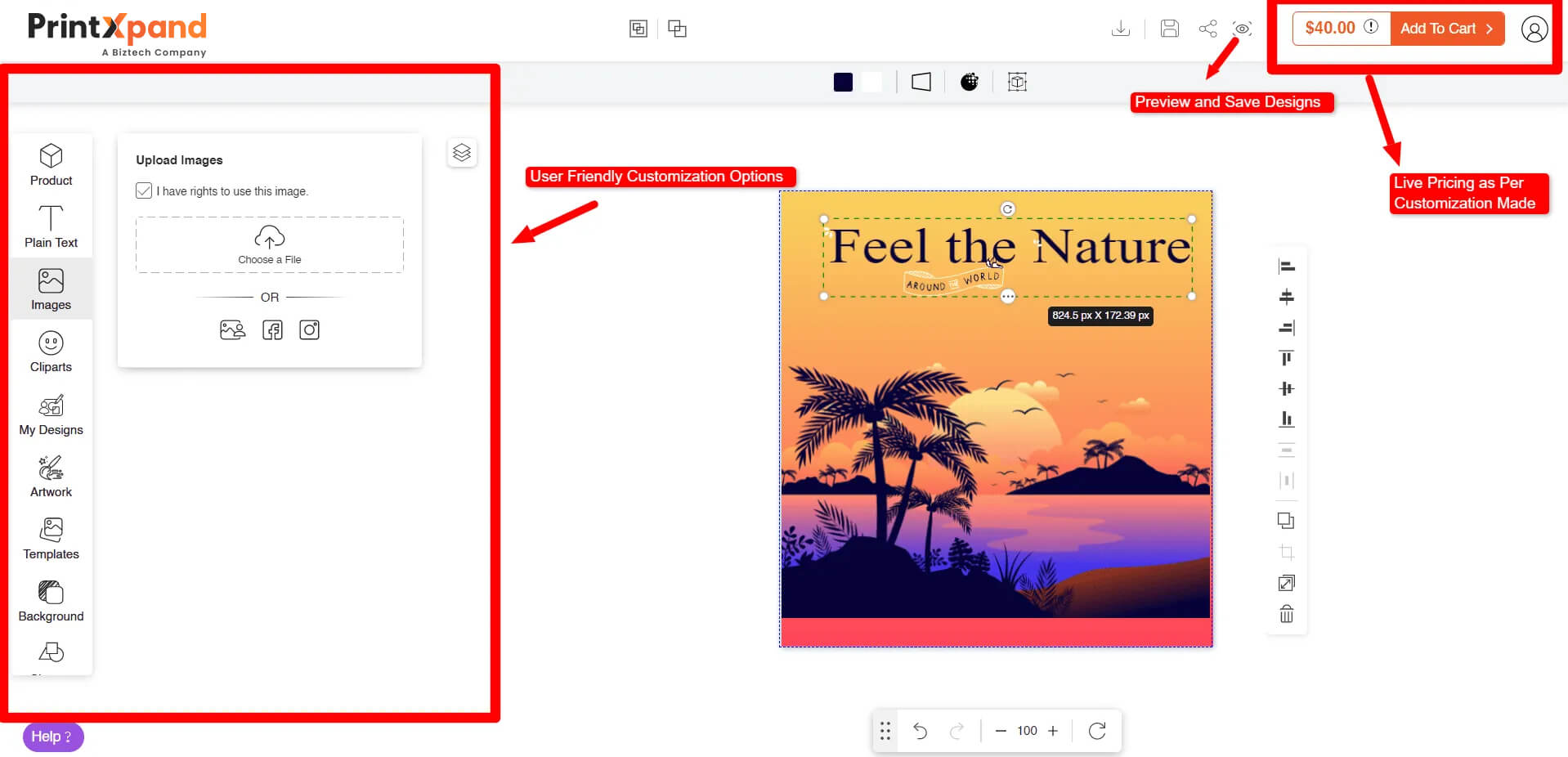 - Friendly User Interface: Easy-to-use and intuitive interfaces for your sellers and customers, enabling them to create a smooth way to create and purchase personalized products.