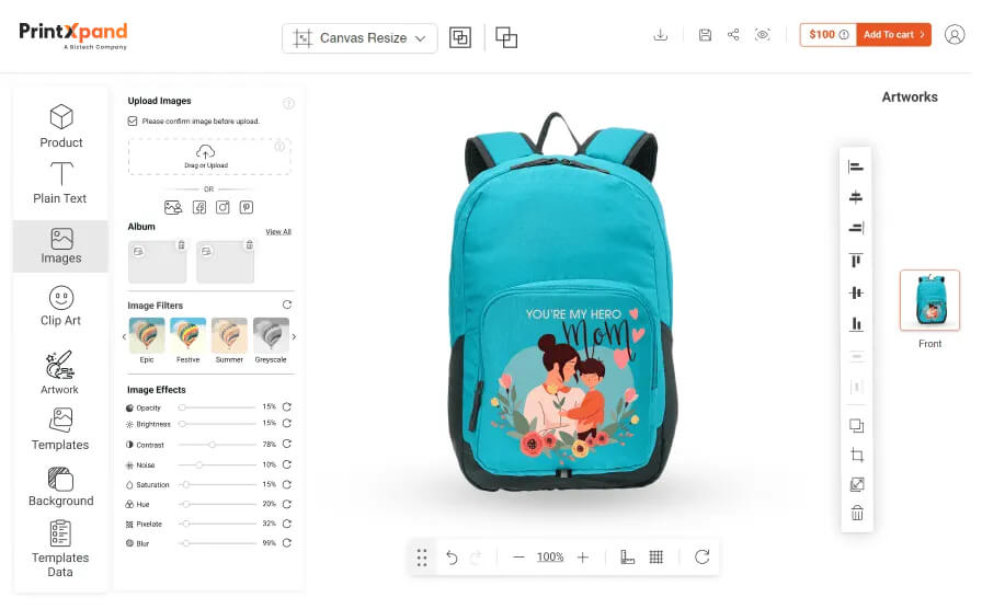 Here are some key features of PrintXpand’ Online Product Design tool: