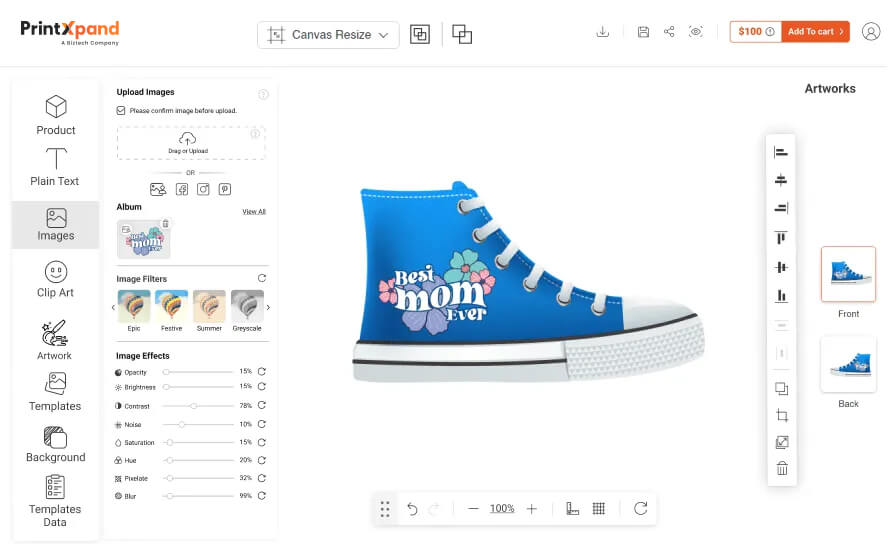This powerful tool allows your customers to create their own designs and upload custom images, making their t-shirts truly unique and meaningful. With a user-friendly interface and a wide range of customization options, your customers will love designing their own t-shirts for Mother’s Day and other special occasions.