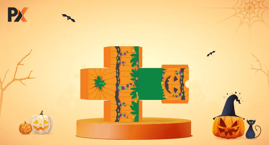 Utilize dark backgrounds to make Halloween-themed designs pop. You can also let businesses customize the packaging to match their own Halloween style.