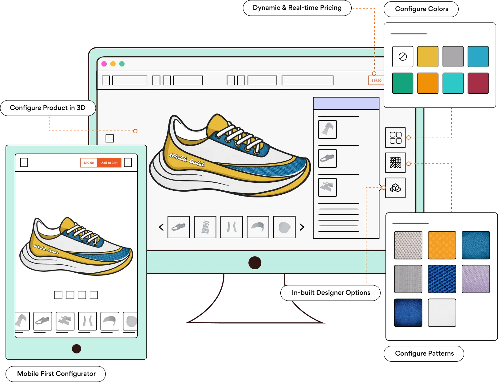 Yes, the solution really offers a smooth experience of designing a product in 3D, be it a shoe, T-shirt, etc. To experience this yourself, request a demo.