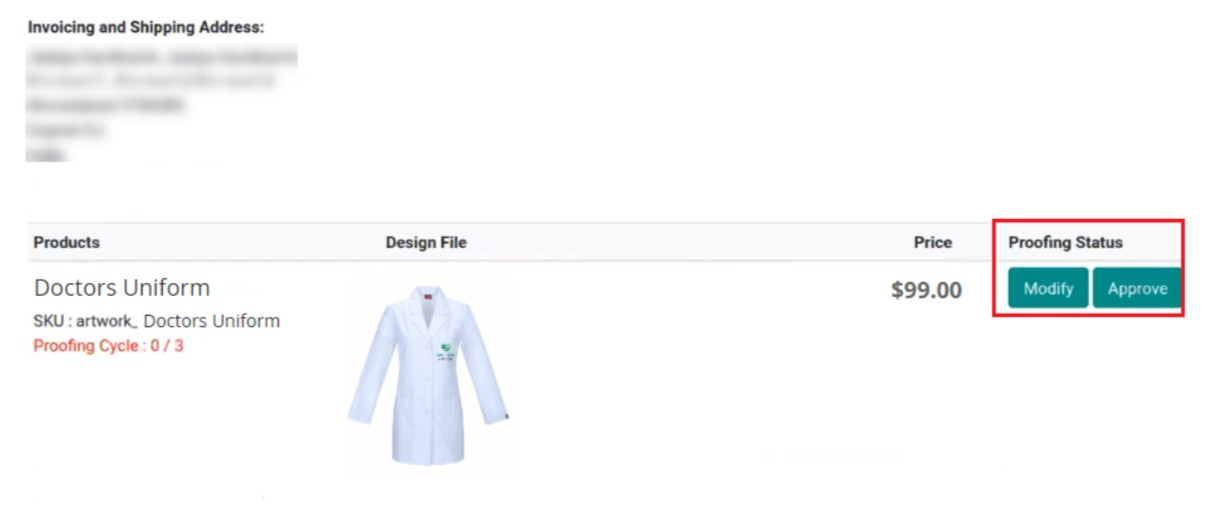 - The link that your customers get will look something like the below image. If they find the design file to be perfect, they can directly approve the status. In case, they want to make changes, the modify button will directly take them to the frontend of the Designer Tool.