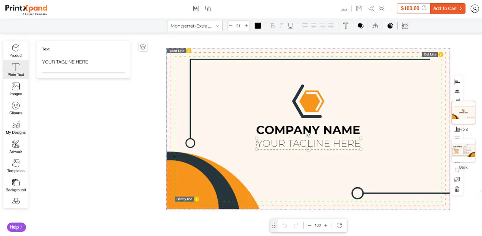 A Product Designer Tool comes with a Bleed Cut Safety Line Manager. It gives a clear view to the end-user about the bleed or cut lines, and that they have to play around with customization only up to a limited area.