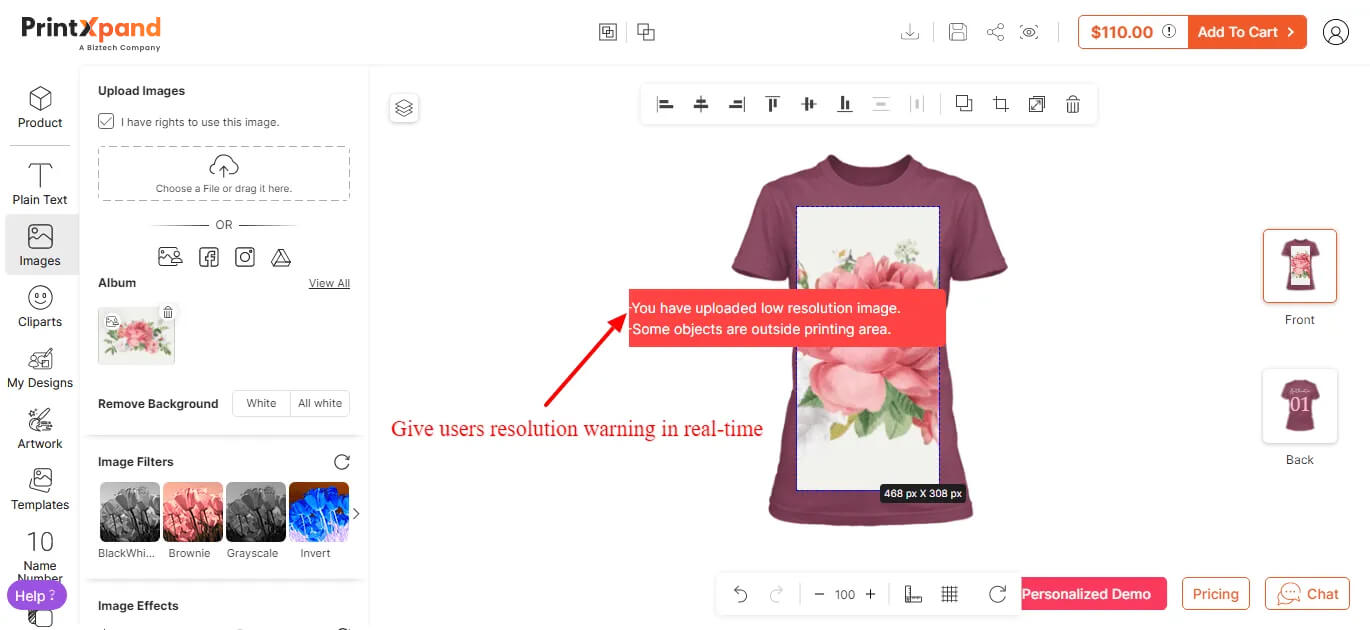 Suppose a customer uploads a custom image. But it is of a low resolution. So, how will they know about it?