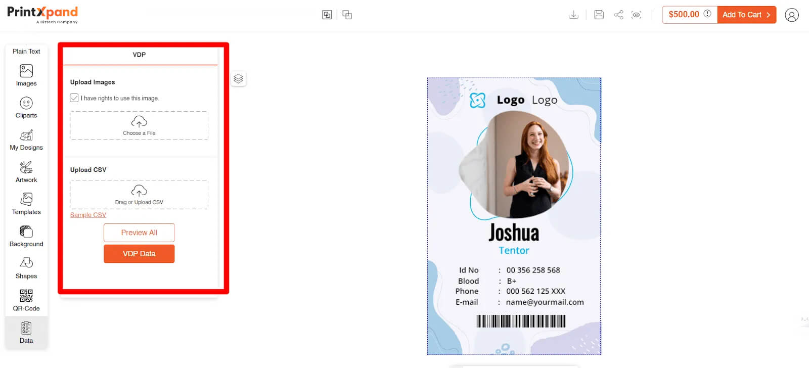 Let’s say you run a printing business that specializes in ID cards. Imagine a customer comes to you with a request for 200 ID cards, each with different names and employee information.