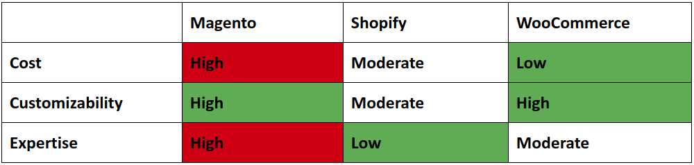 For example, if you’re a tech start-up running out of a garage, you would probably opt for WooCommerce. Or if you’re an enterprise that needs a customizable web-store, down to the smallest detail, you might consider going for Magento. So, there isn’t one right answer to that question. In the end, you may even forgo all these factors and pick one because it feels right to you. The choice is yours.