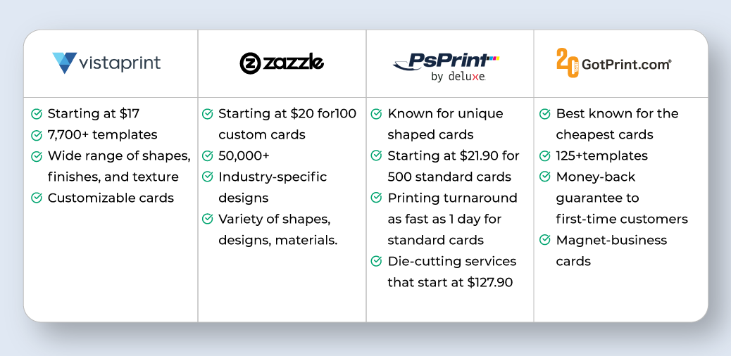 If you were to look at the website of all these companies, they are extremely well-functioning and without any clutter. When you start a business card business, you need to ensure that the website you build offers a seamless experience.