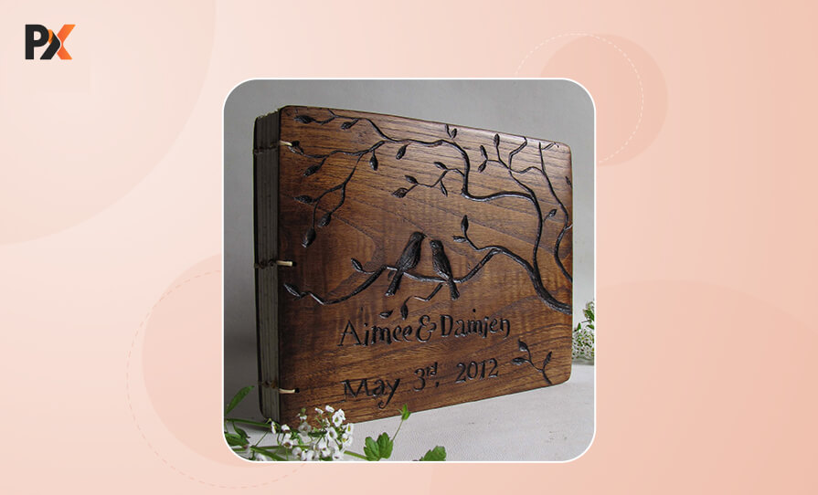 For 5-star hotels or high-end guest houses and weddings, an engraved photo book cover or a guest book can be a great option.