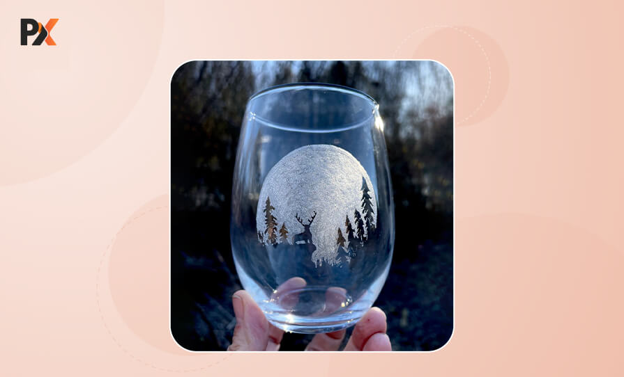 Glass etching is the creation of beautifully intricate designs on glass window panes, mugs, shot glasses, steins, and wine glasses. Laser engraving can let you achieve a great glass-etched piece.
