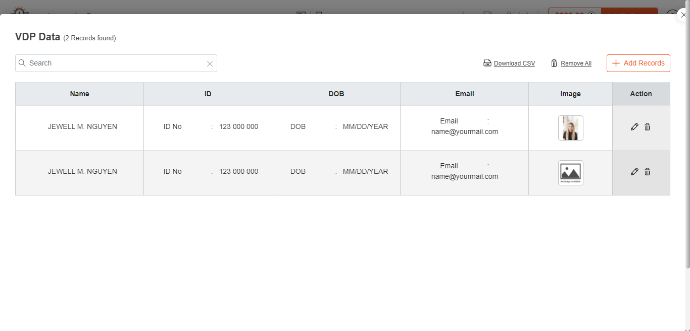 PrintXpand’ Product Design Tool offers an in-built feature of the VDP data field. Once you enable it from the backend of the tool, your customers can enter relevant data, and customize multiple products at once.
