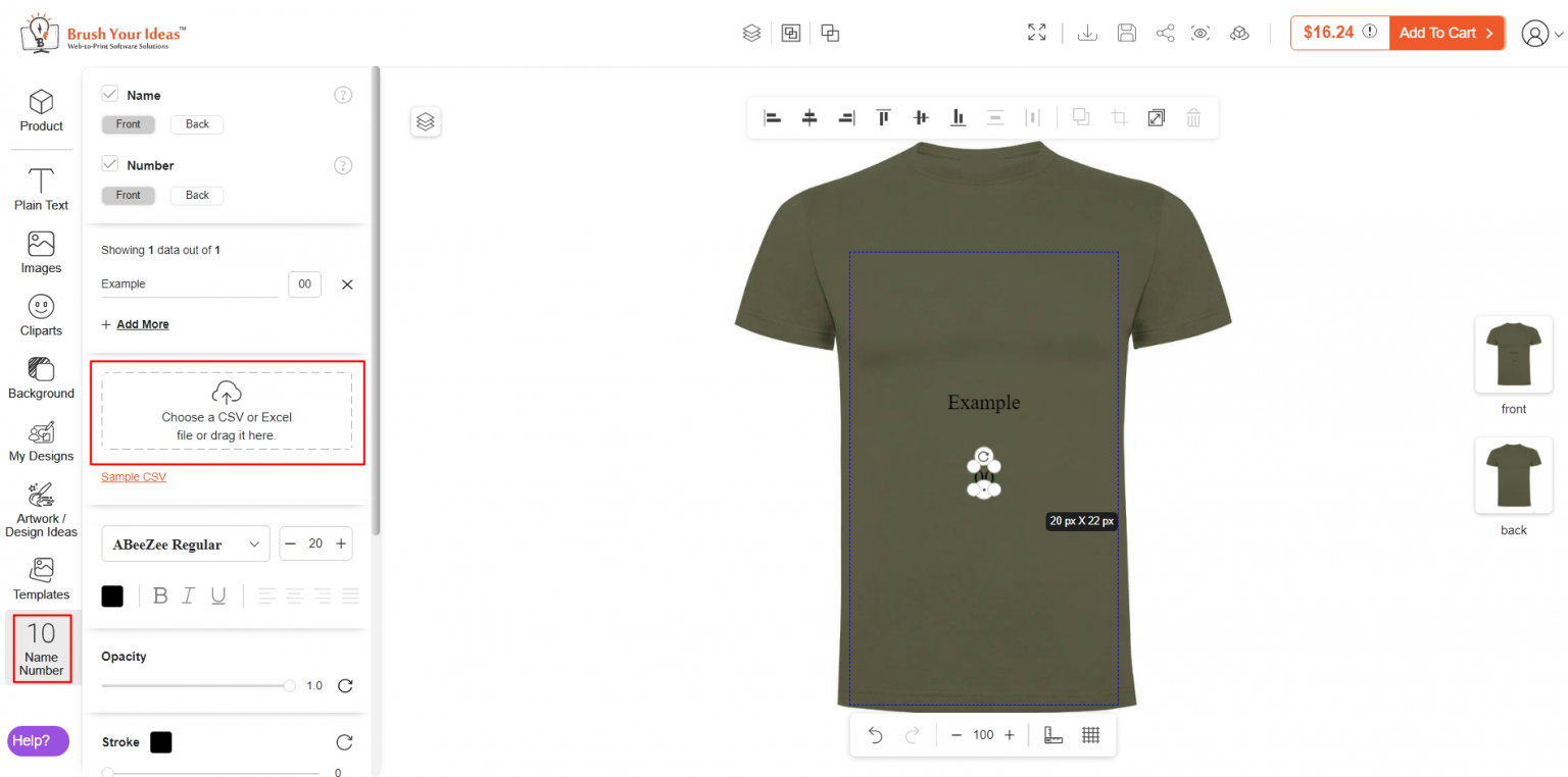 This is the most ideal feature for products like t-shirts, hoodies, caps, and such. With the name and number import feature, your customers can directly upload the bunch of names & numbers in less time.