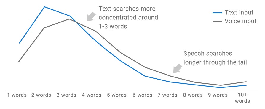 Generally, speech searches tend to be more conversational. According to Purna Virji, PPC expert and senior manager at Microsoft, speech searches tend to be longer through the tail.