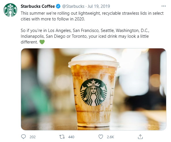 Starbucks is a popular name when it comes to sustainable packaging efforts. They introduced straw-less lids across the US and Canada. The lids consist of widely recyclable polypropylene plastic.