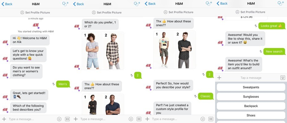 H&M is a brand known for its virtual assistant. The shopping assistant, based on provided customer information, suggests styles and outfits. If a shopper likes the outfit, it guides them to the online store to place an order.