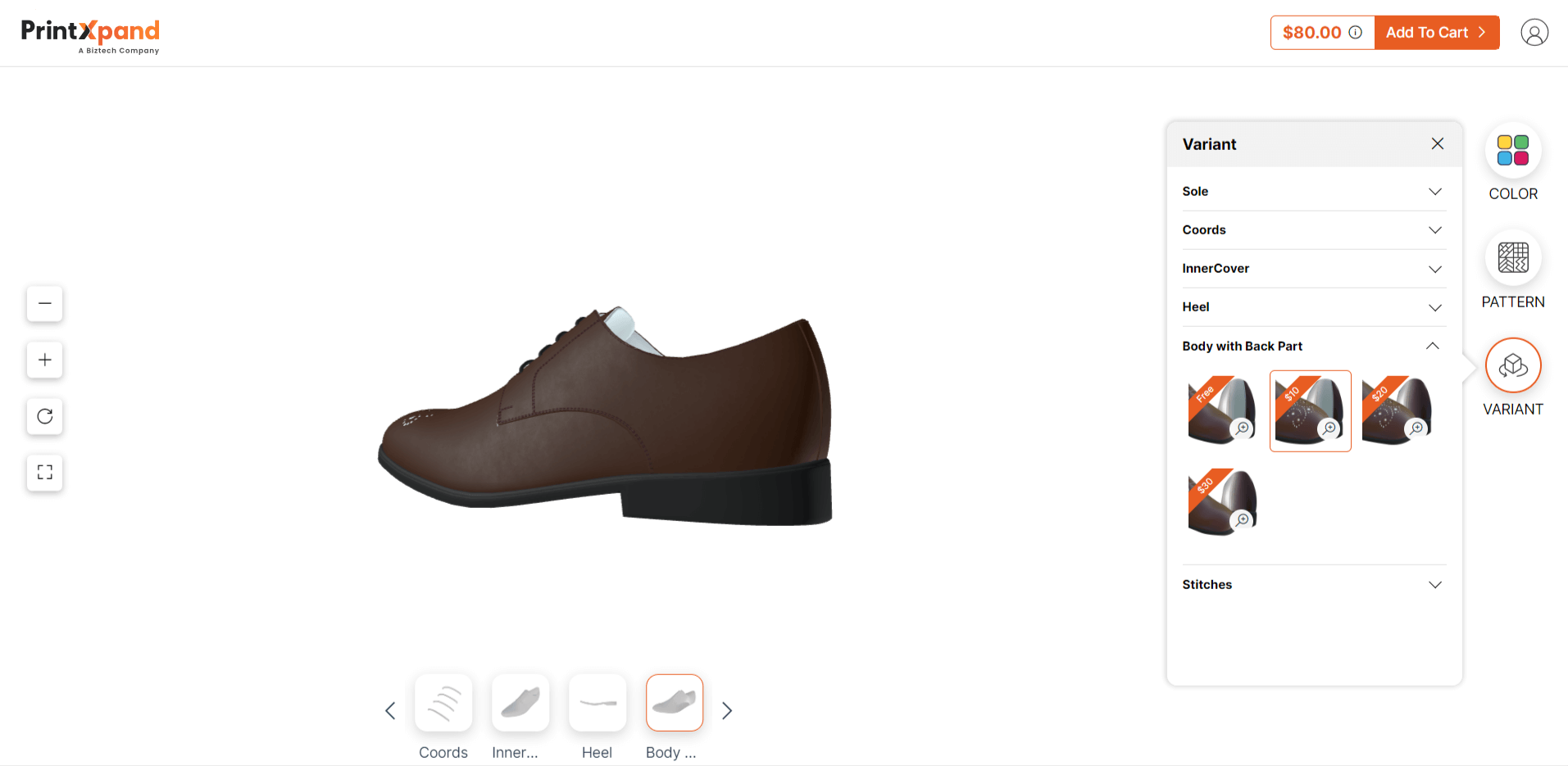 Along with the basic customization options, it also allows users to configure the product’s texture, style, sizes, etc. It is equipped with a locking element that gives businesses control over what users can customize. The tool’s interface is user-friendly and easy to use, making it accessible to customers of all technical backgrounds.