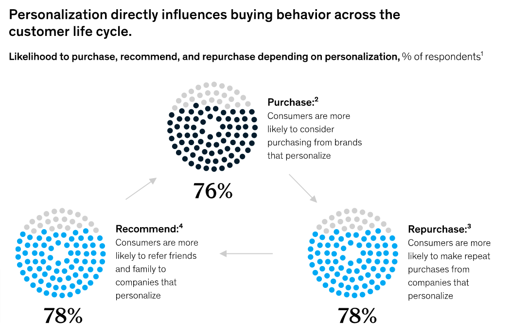 - Companies that excel at personalization generate 40% more revenue from those activities than average players.