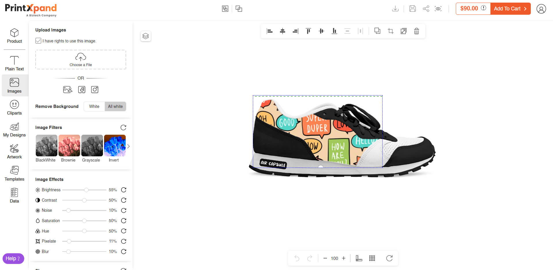 PrintXpand is a platform-independent product designer tool that is compatible with different file formats and printing methods. You just need to integrate it with your website, add the products of your choice, and start selling.