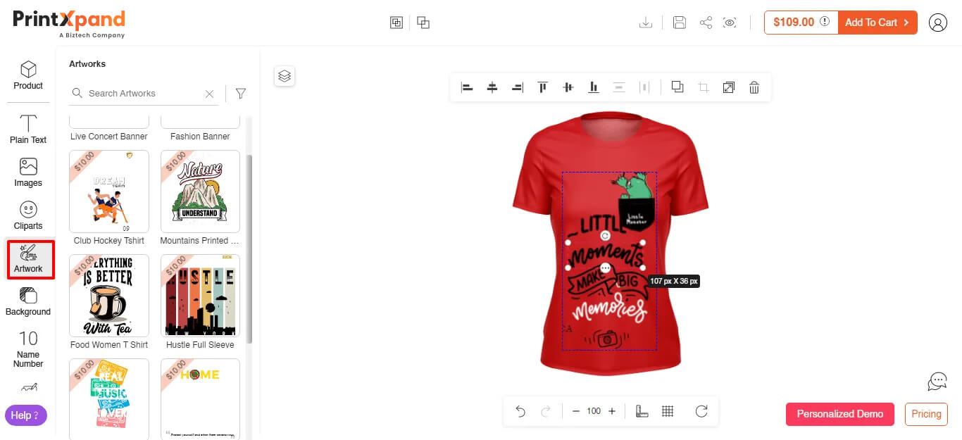 PrintXpand provides a functional design tool that you can integrate into your platform and sell personalized products. It comes with an inbuilt design library that makes the process of customization effortless.