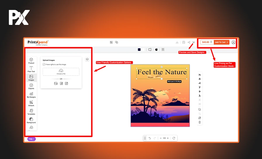 - Friendly User Interface: Easy-to-use and intuitive interfaces for your sellers and customers, enabling them to create a smooth way to create and purchase personalized products.