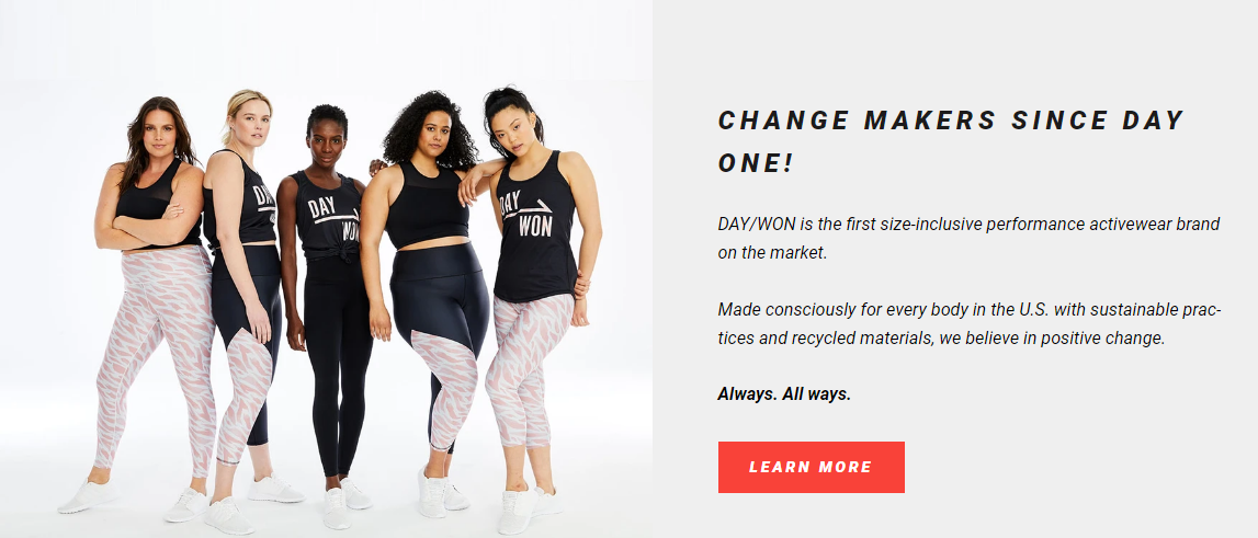 Day/Won is the first fully size-inclusive activewear brand in the US. Its products are for everybody with sustainable practices. They use recycled polyester and deadstock for most of their collection. All their prints are digitally constructed and never water dried.