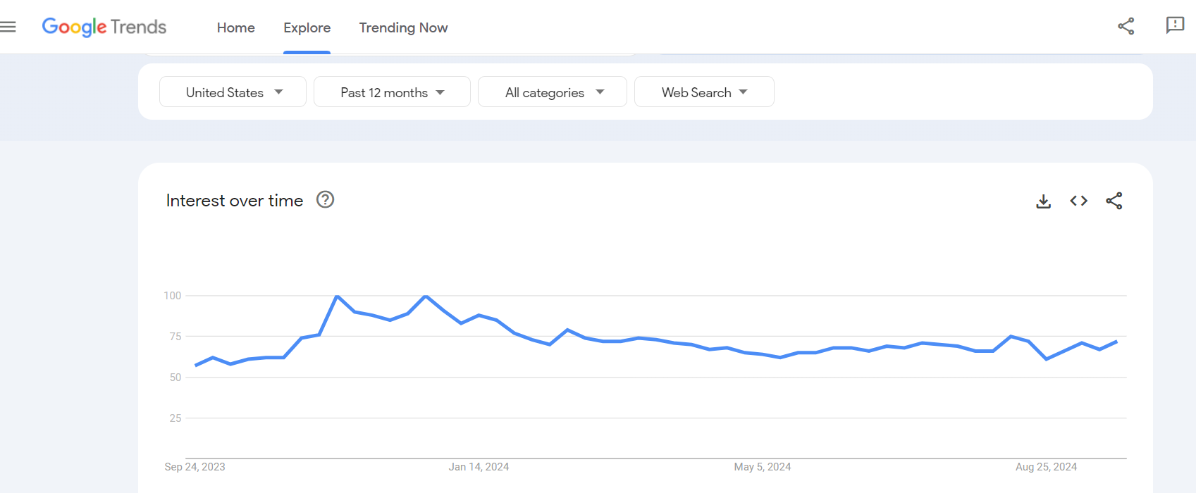 Google Trends is a helpful tool that helps you track the search volume of a specific term over time. For instance, you can search for the term handmade soaps in the US in the past year to get an idea about its demand.