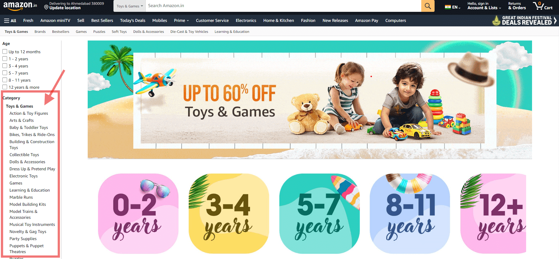 You will get an idea of trending products to sell from the top categories on Amazon. Once you click on a category, you will be able to see other sub-categories.
