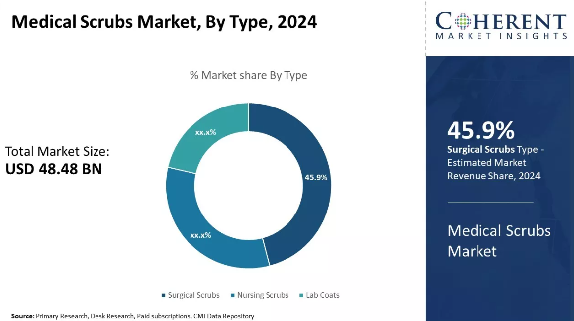 The estimated market value of the global medical scrubs industry will be around USD 48.48 billion in 2024. Multiple studies show that this market will steadily grow from 2024 to 2031.