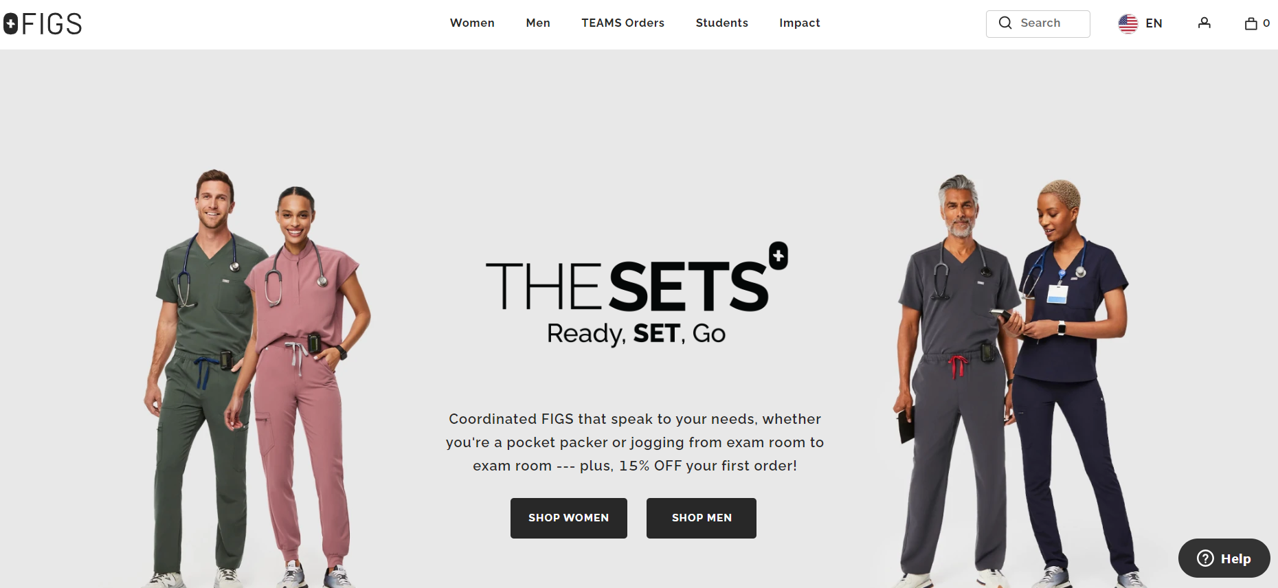 For instance, FIGS presents itself as a company that honors and empowers medical professionals by offering fashionable and cozy scrubs. Its brand voice directly targets its potential customers—young professionals in healthcare. Moreover, its logo is on point!