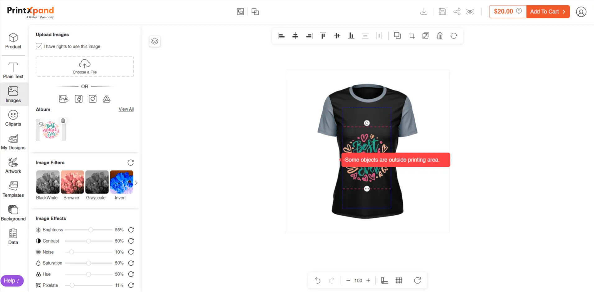 This powerful tool allows your customers to create their own designs and upload custom images, making their t-shirts truly unique and meaningful. With a user-friendly interface and a wide range of customization options, your customers will love designing their own t-shirts for Mother’s Day and other special occasions.