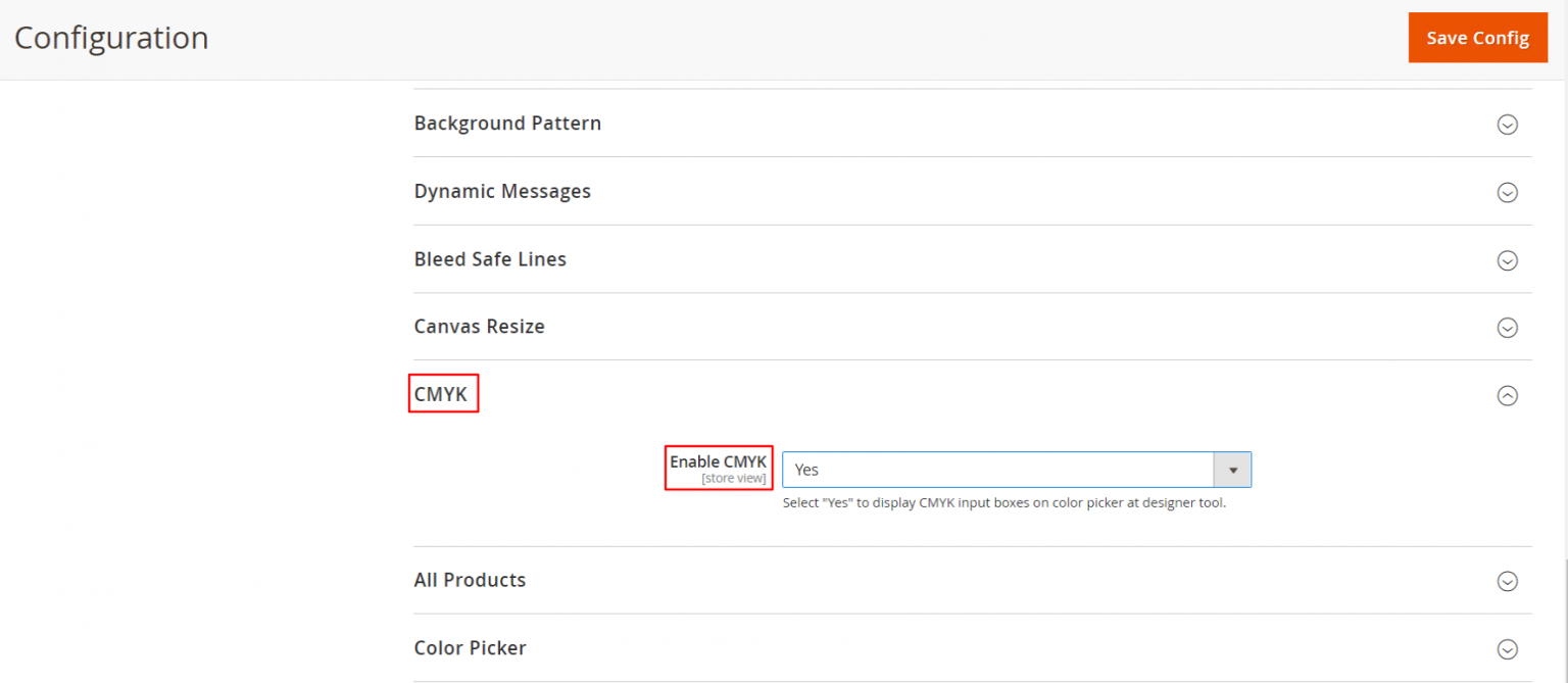 Additionally, once you enable the CMYK option, end users can easily choose colors by inserting CMYK values.