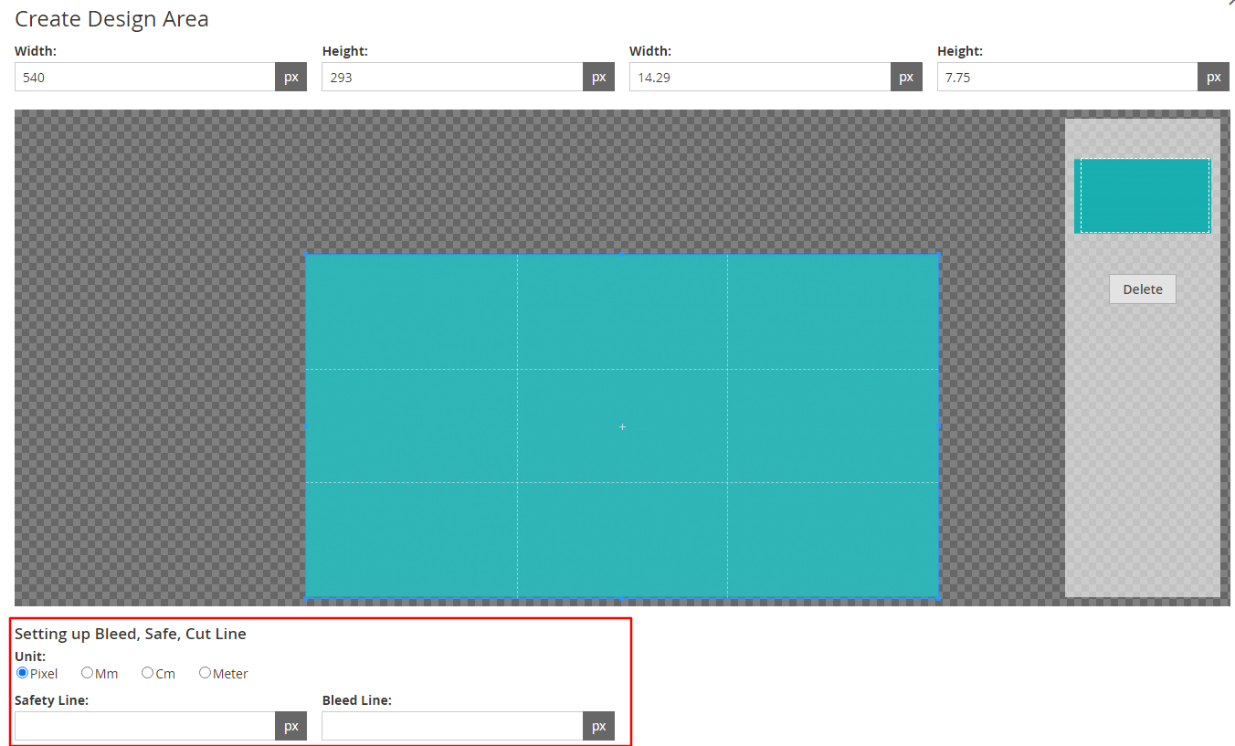 From the backend, you can set these lines by selecting units like pixel, mm, or cm. You can choose the color for each line as per your need.