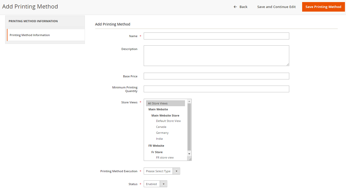 Using the Product Design Tool, you can assign color and printing methods to products from the backend. End-users can then select the printing method when customizing the product.