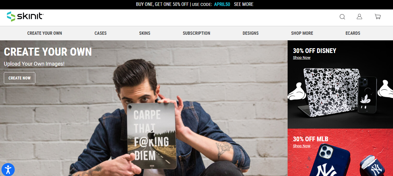 Skinit is a California based industry leader in personalized cases and skins for consumer electronic devices. The brand offers product customization on their website, where customers can customize various products, including phone cases, laptop skins, and more. Skinit also enables customers to upload their photos and create designs.