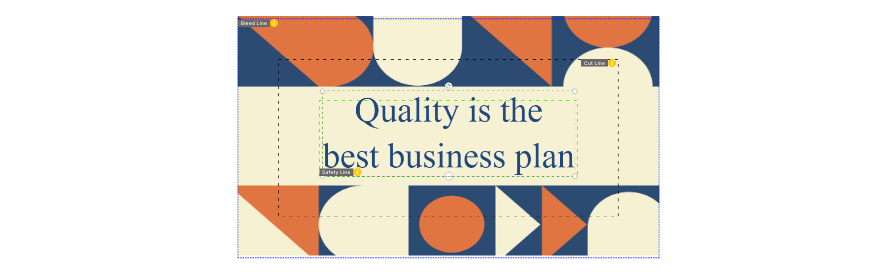 Options like bleed cut safe margin are important, especially for business cards, greeting cards, notebooks, etc. If there is a logo or text on the edge of a template, it is likely to appear slightly cut off in the final product. To avoid such errors, our Promotional Product Designer comes with a safety margin that warns an end-user not to add designs outside the line.