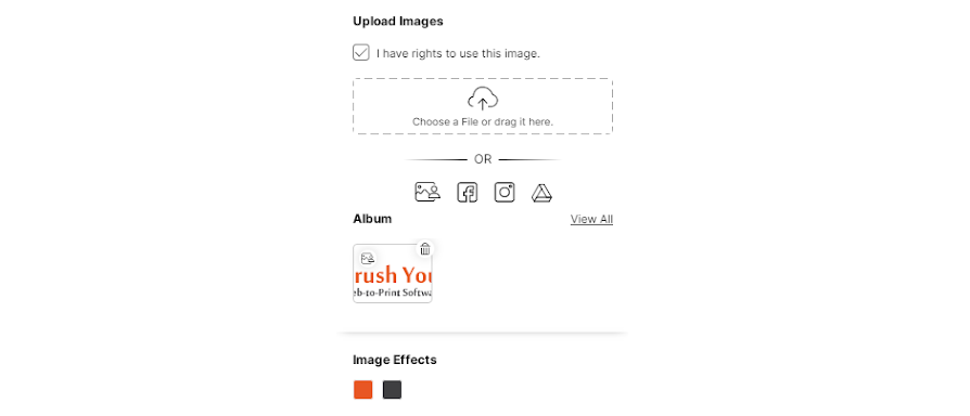 Let users add company logos, team images, etc. to their products. The tool enables them to upload custom images from phone galleries or social media accounts using personalized image upload. As per their choice, users can use different filters and effects to enhance the image.