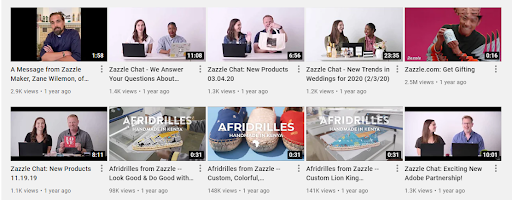 (On-demand marketplace Zazzle using YouTube to share Q&A, trends, new features, etc.)