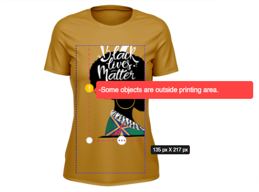 The tool also enables business owners to take care of printing and image resolution. For example, an admin can add low resolution or print area warning messages which will appear on the front end. This notifies customers about the resolution limit in real-time.