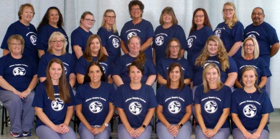 The team at Athens Surgery Center wore custom tees to celebrate the hospital’s 14-year anniversary.
