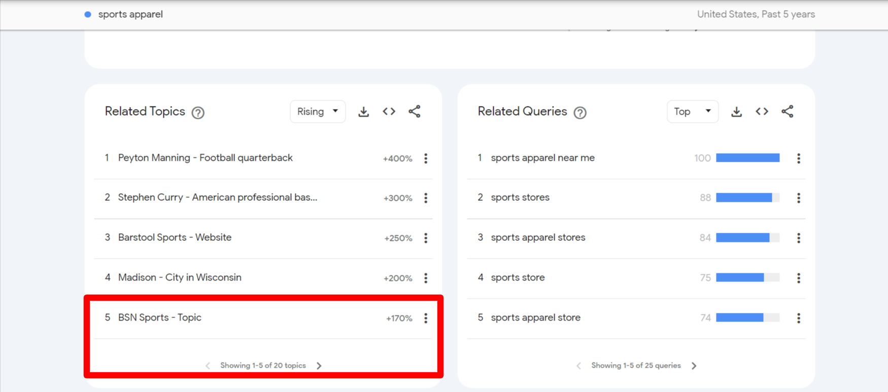 BSN Sports has seen an impressive 350% increase in search percentage over the past 12 months!