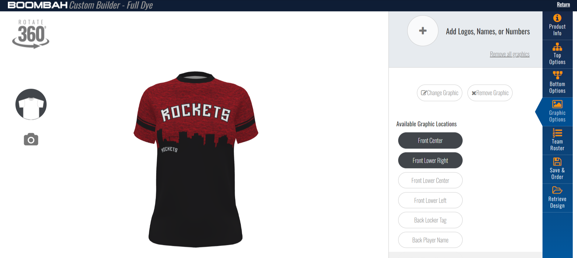 The 3D model can be rotated and zoomed in and out, giving buyers a better idea of what their customized jersey will look like.
