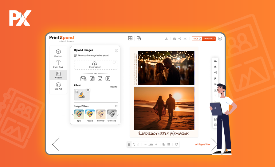 - Use a photo book design tool to let the customers create and personalize their albums online in just a few clicks.