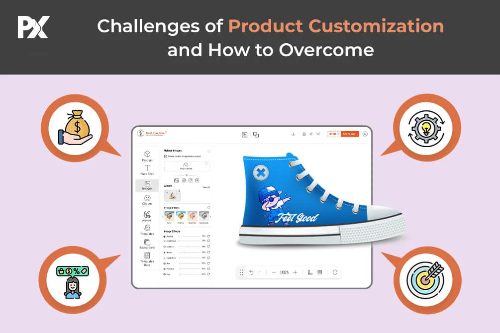 The Product Design Tool from PrintXpand provides a seamless navigation and a feature rich library of thousand plus themes, fonts, stickers, and more. So, you can provide the best shopping experience.