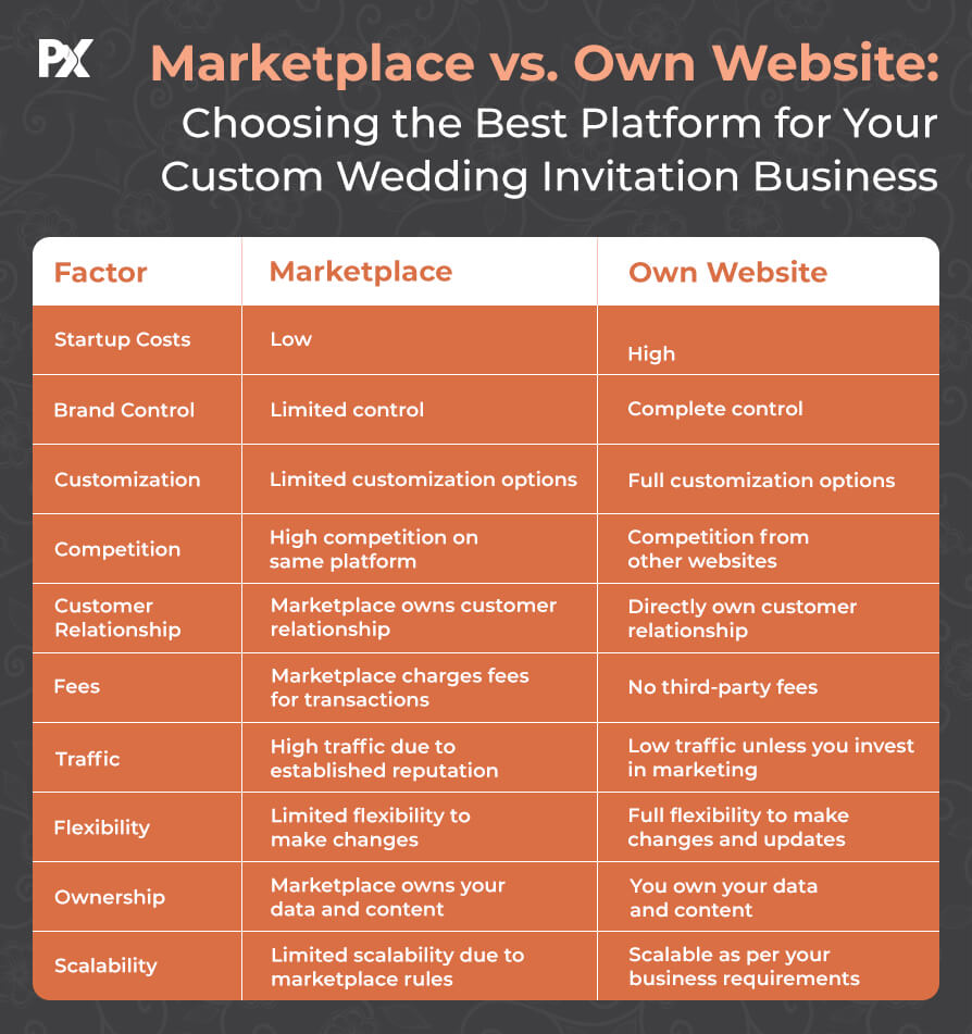 When it comes to selling your customizable wedding invitations, deciding whether to use a marketplace or create and start online print shop is a big decision.