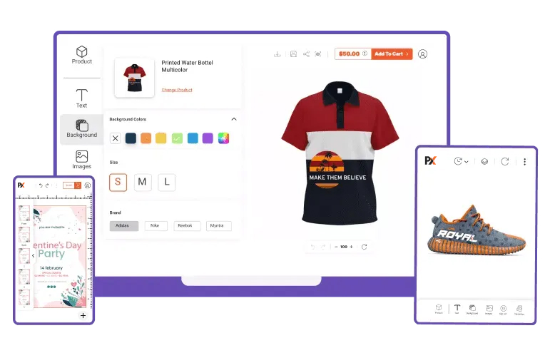 The product designer tool by PrintXpand allows your customers to upload their own images and designs, choose from a variety of colors and fonts, and select from a range of product types and sizes.