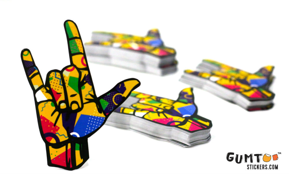 You can also consider stickers with designs and bright or multiple colors. These stickers never go out of style. Here’s a sticker with a hand-horn style that creates an amazing visual effect.