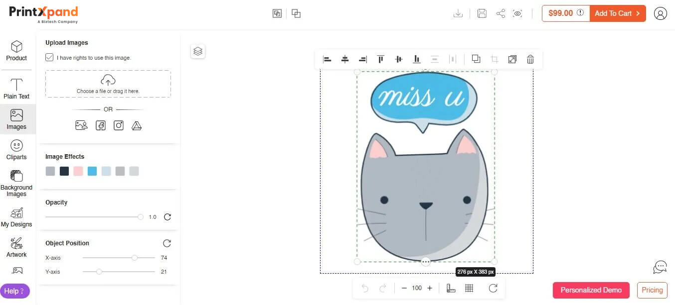 - Object Handler to Make Changes in Position of Cliparts and Size of Texts