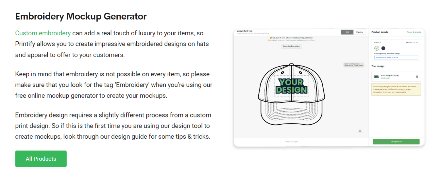 Printful has a user-friendly interface that makes it simple to upload your designs and customize your products.
