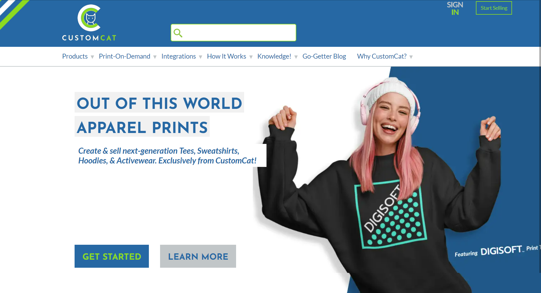 CustomCat offers DIGISOFT™ printing, sublimation printing, and embroidery for decorating items.