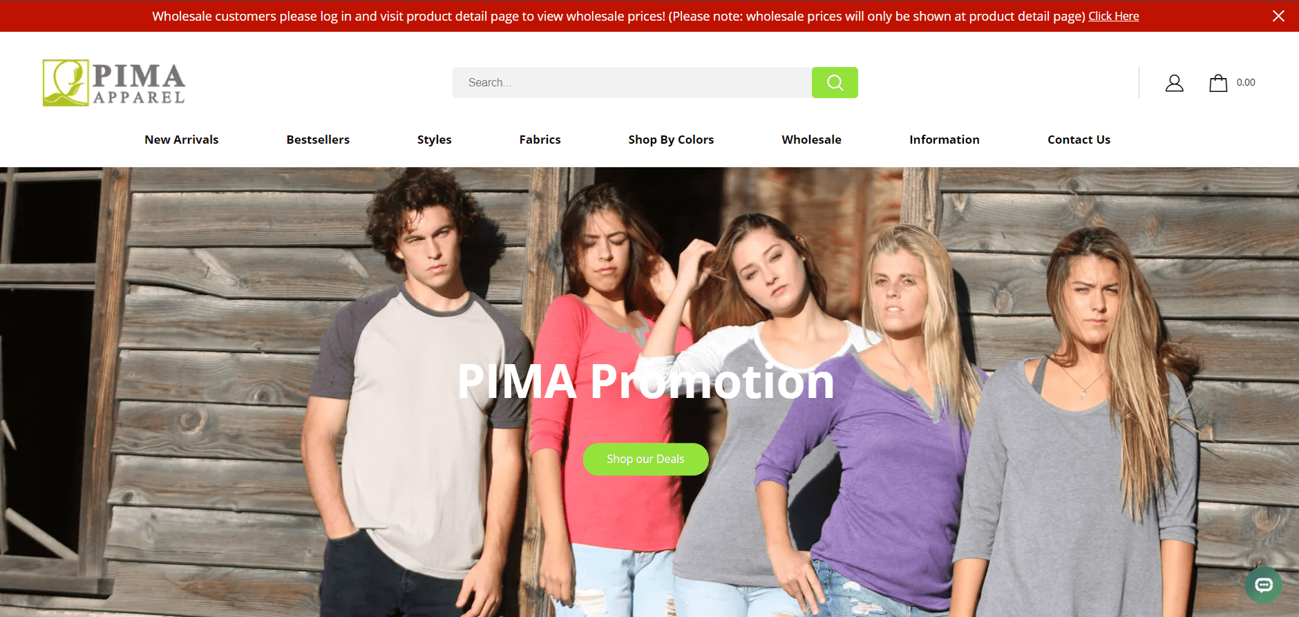 Pima Apparel is a California based wholesale t-shirt bulk supplier and also one of the top known t shirt manufacturers from the USA that offers 100+ styles of fashionable tees, knit tops for juniors, kids, men and women. Its PIMATEE brand also features top designer-like fabrics made out of the finest ring spun cotton.