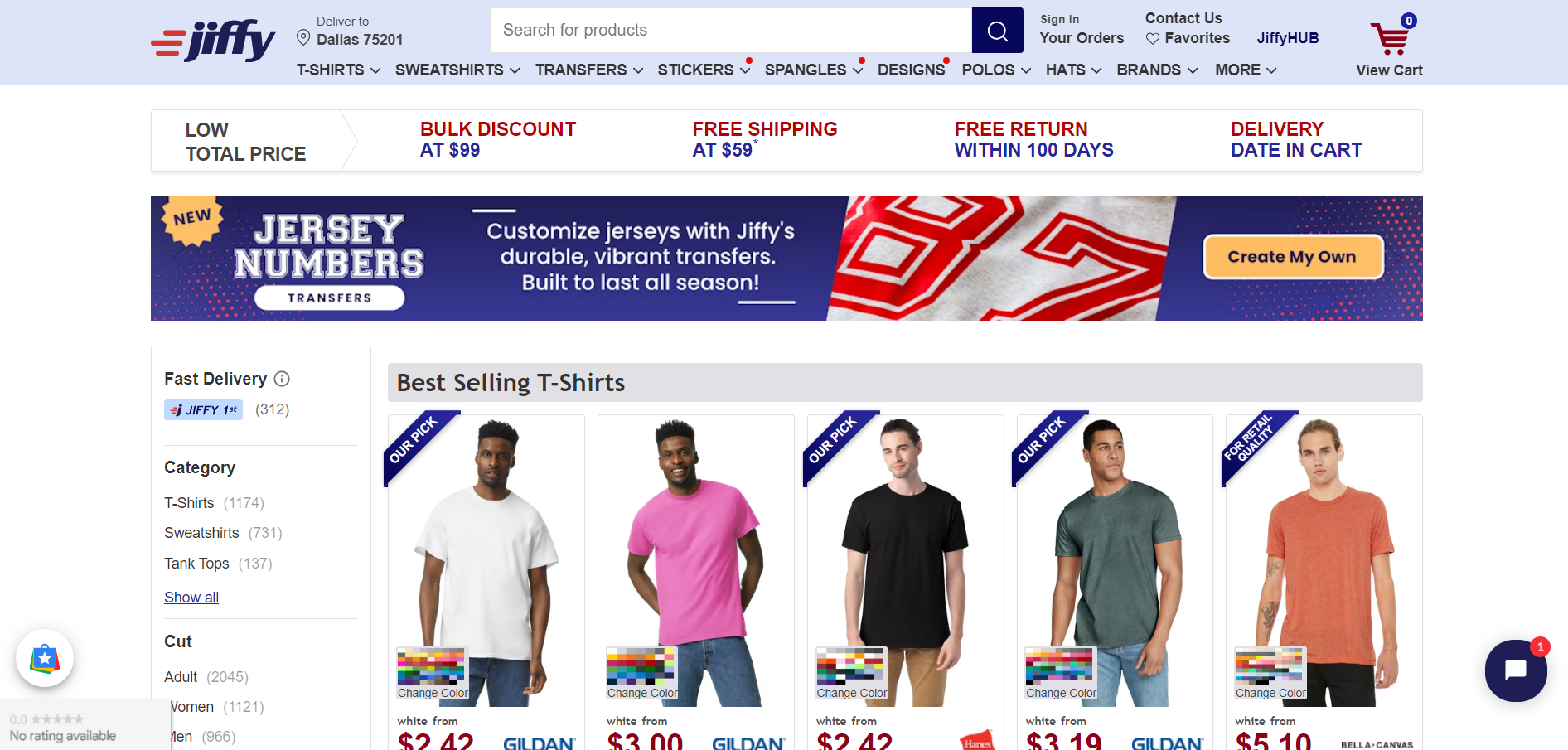 Whether you are an embroiderer, sublimation printers, or screen printer, you can order products in bulk at nominal prices at Jiffy Shirts.